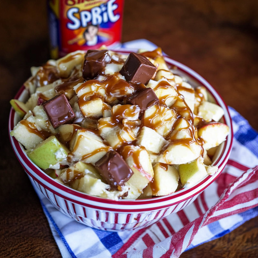 Snickers Caramel Apple Salad is a sweet and crunchy dessert salad that combines crisp apples, creamy whipped topping, chunks of Snickers candy bars, and a drizzle of rich caramel sauce. This easy no-bake treat is perfect for potlucks, family gatherings, or a fun twist on a classic dessert!