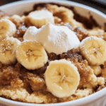This Southern Banana Cobbler is a warm, gooey, and irresistibly sweet dessert, featuring caramelized bananas, a buttery cobbler topping, and a hint of cinnamon. It’s like a banana pudding meets cobbler, perfect for serving with vanilla ice cream or whipped cream!