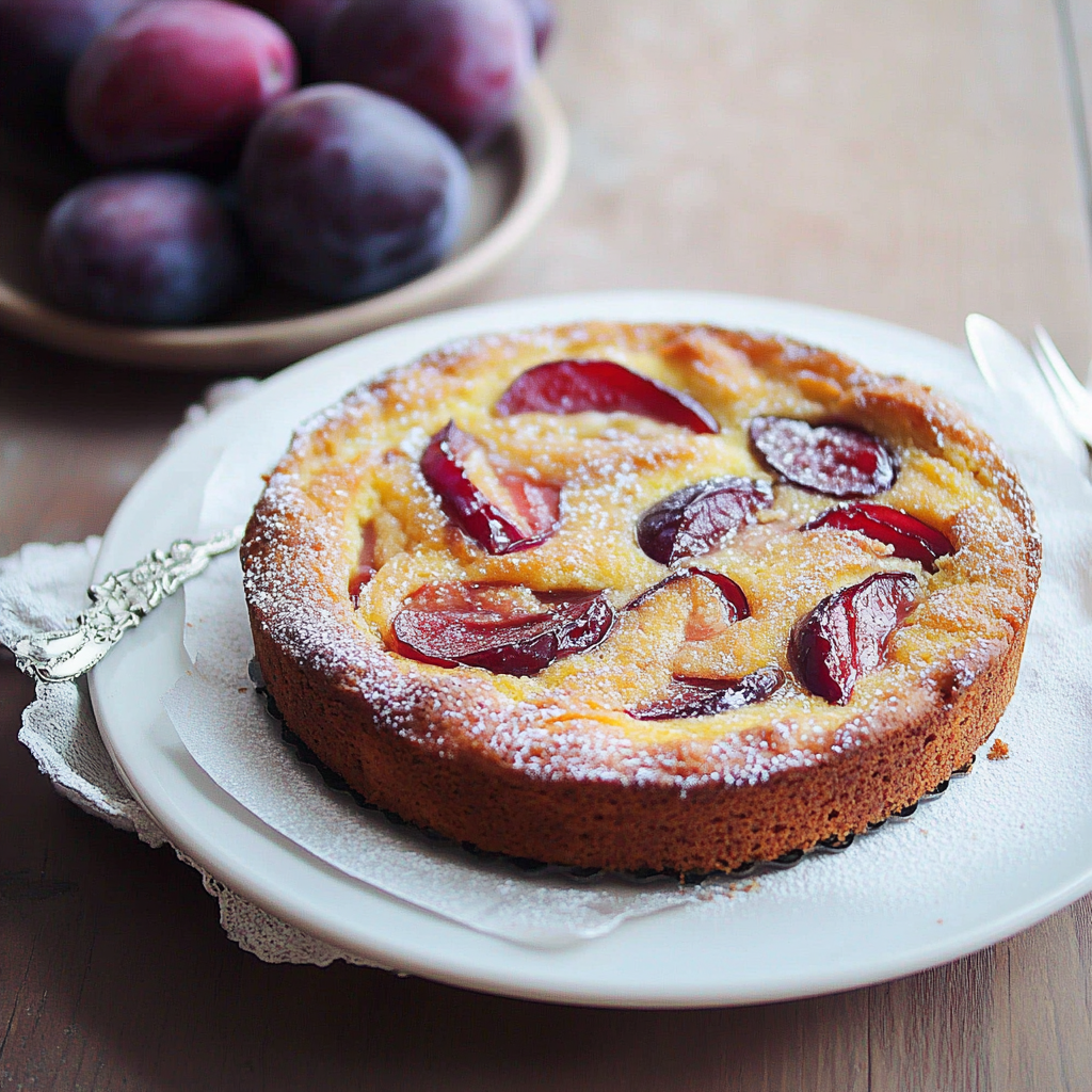 A moist and tender cake made with sweet plums and warm spices, layered over a rich custard base – perfect for a cozy dessert or afternoon treat.
