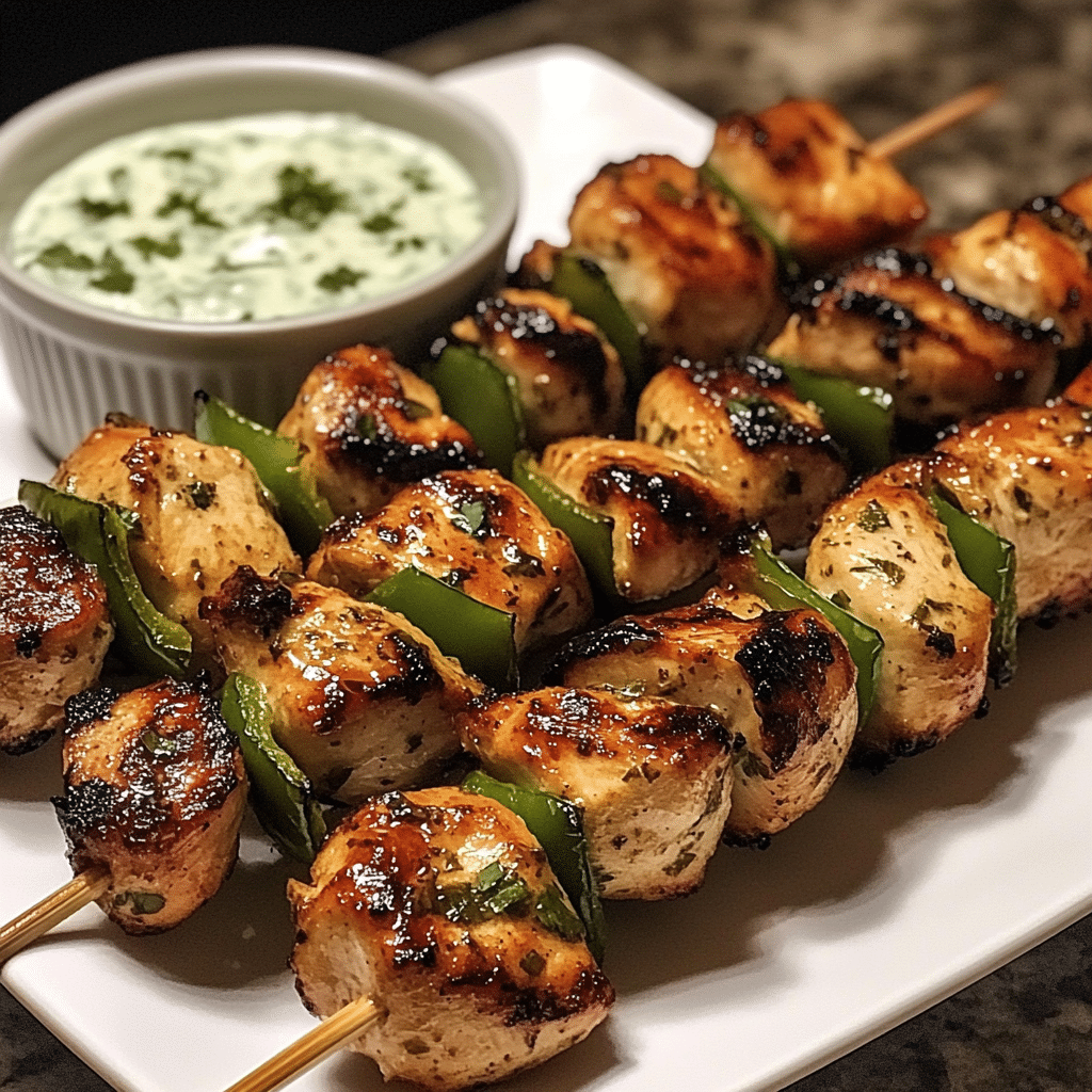 - Grill: Preheat a grill to medium-high heat. Grill the skewers for 8–10 minutes, turning occasionally, until the chicken is cooked through and lightly charred.