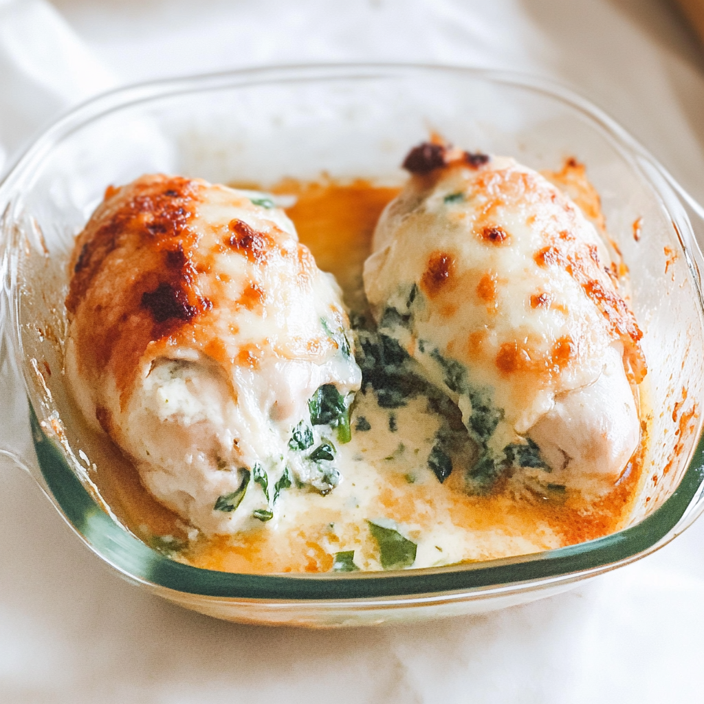Juicy chicken breasts stuffed with a creamy mixture of spinach and cream cheese, then baked until golden and flavorful.