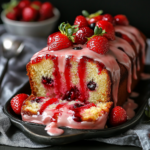 Strawberry Drizzle Loaf Cake with Fresh Berries is a soft, buttery pound cake infused with subtle vanilla and topped with a vibrant strawberry glaze and a generous handful of fresh berries. This easy yet elegant loaf is perfect for spring and summer gatherings, afternoon tea, or a beautiful brunch centerpiece. Moist, flavorful, and stunning to serve, it brings together the brightness of berries and the richness of classic loaf cake.