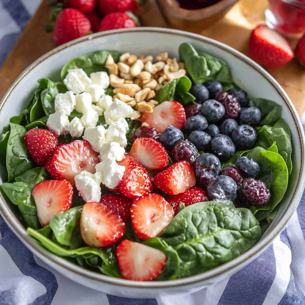 Strawberry Spinach Salad is a delightful, fresh, and healthy recipe that brings a burst of flavors to your table. With its mix of sweet strawberries, tangy feta, crunchy nuts, and a zesty homemade dressing, this salad is perfect for any occasion. Whether you’re serving it as a side dish or adding protein for a light main course, this recipe is sure to impress. Give it a try, and enjoy a delicious, colorful salad that’s as beautiful as it is tasty!