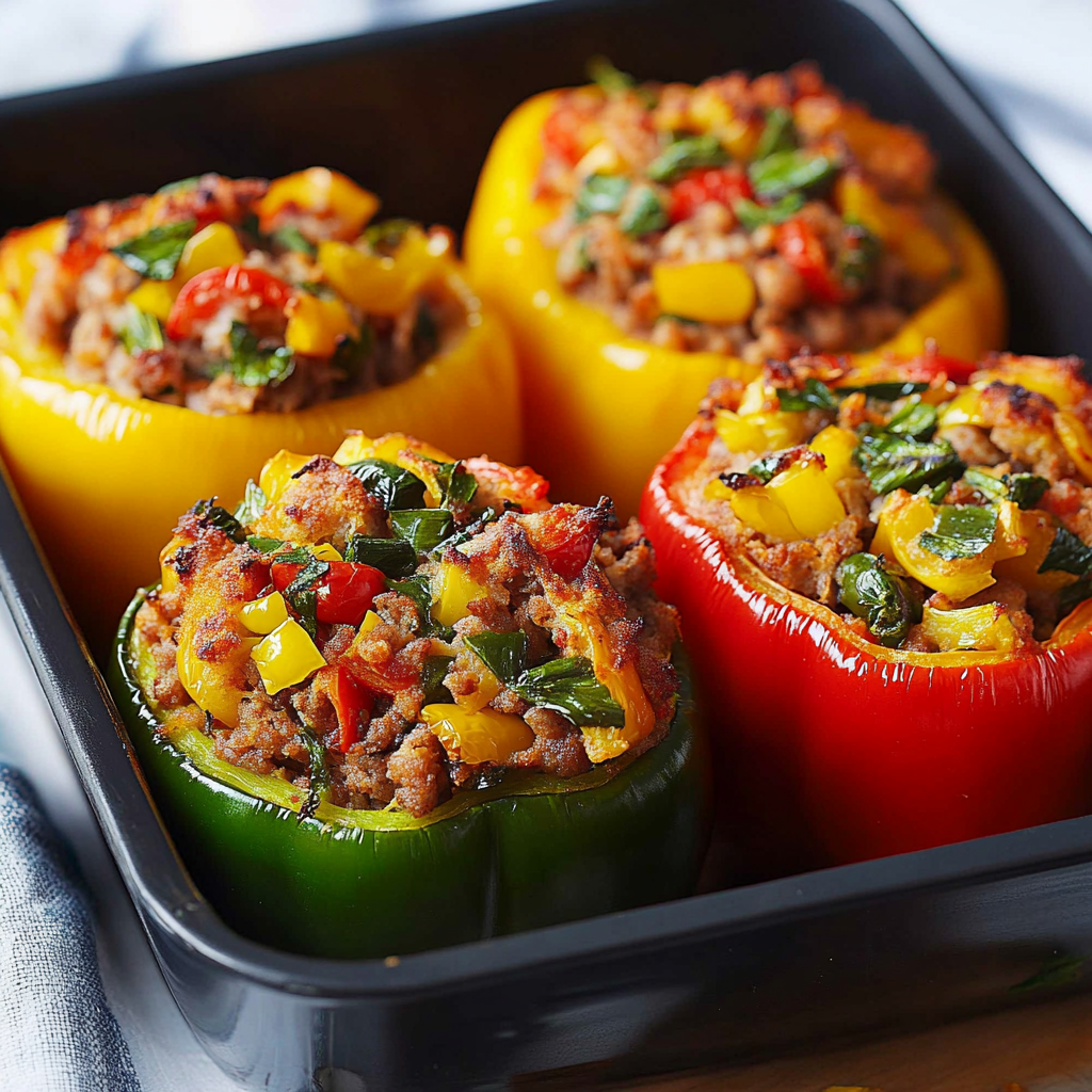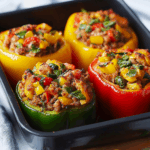 Stuffed bell peppers are a classic and hearty dish featuring bell peppers filled with a savory mixture of ground meat, rice, vegetables, and seasonings, then baked until tender and flavorful.