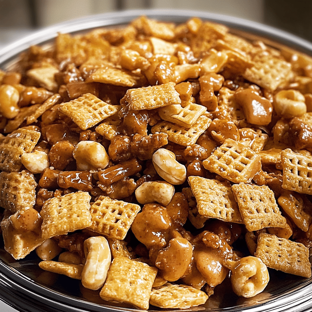This crunchy, sweet, and salty snack mix is packed with crispy Chex cereal, pretzels, and nuts, all coated in a buttery toffee glaze. It’s an addicting treat that’s perfect for parties, holidays, or just snacking at home!