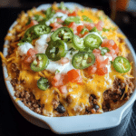 Taco Casserole is a delicious, easy-to-make dish that combines all the bold flavors of tacos in a baked, cheesy casserole. With layers of seasoned ground beef, beans, crispy tortillas, and gooey melted cheese, this family-friendly meal is perfect for busy weeknights or potlucks.