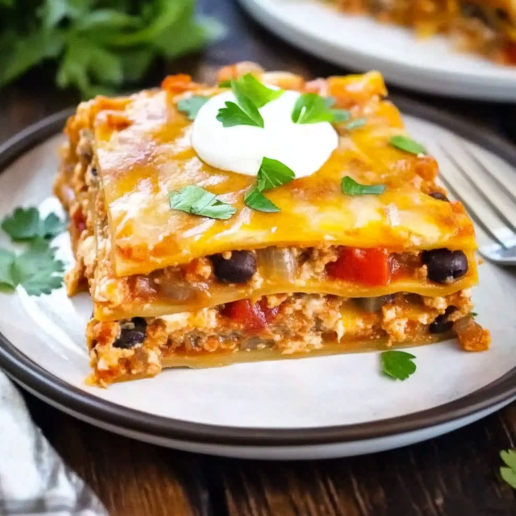 Taco lasagna is a flavorful fusion of Mexican and Italian cuisine, layering tortillas with seasoned beef, salsa, cheese, and beans for a hearty, crowd-pleasing dish.