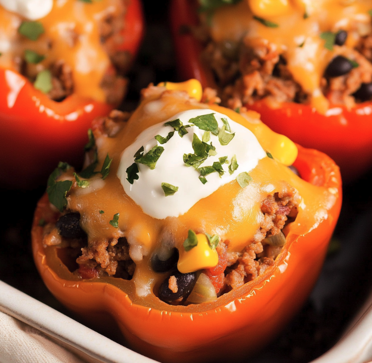 Taco Stuffed Peppers are a flavorful and satisfying meal thatās easy to customize and perfect for any occasion. With their vibrant colors, hearty filling, and endless topping possibilities, these peppers are sure to be a hit with the whole family. Try them for dinner tonight and enjoy a fun twist on taco night!
