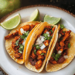 Tacos Al Pastor are a classic Mexican street food, deeply rooted in cultural fusion and bursting with bold, savory flavors. Originating from the influence of Lebanese immigrants in Mexico, this dish combines the traditional shawarma-style spit-roasted technique with Mexican marinades and ingredients. The result? Juicy, spiced pork paired with sweet grilled pineapple, all nestled in warm corn tortillas—an irresistible balance of sweet, spicy, and smoky.