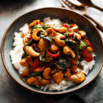 Thai Cashew Chicken Stir Fry is a flavorful, quick-cooking favorite that blends savory sauces, crunchy cashews, and colorful vegetables into one satisfying dish. Easy to customize and ready in minutes, it’s a reliable recipe you’ll turn to again and again — whether for a weeknight dinner or a flavor-packed meal prep. Serve it hot over rice and enjoy a taste of Thai cuisine at home.