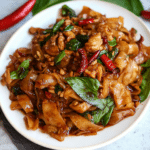 Thai Drunken Noodles (Pad Kee Mao) is a bold, flavorful dish that’s quick, easy, and perfect for a homemade takeout-style meal. The combination of spicy chilies, savory sauce, and fragrant Thai basil makes every bite irresistible. Whether you like it fiery or mild, with chicken or tofu, this recipe is easy to customize. Try it today and enjoy the taste of Thailand right in your kitchen!