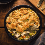 Turkey Pot Pie with Stuffing Crust is a delicious and satisfying dish that turns leftover turkey into a comforting, crowd-pleasing meal. With its creamy filling, savory vegetables, and crispy stuffing topping, it’s a surefire hit for any occasion. Whether you’re using up leftovers or making a fresh batch, this recipe is a perfect way to enjoy the flavors of the holidays in a new and exciting way. Try it today and bring a warm, delicious twist to your dinner table!