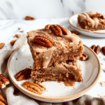 These Vegan Cinnamon Pecan Bars are a delicious treat with a nutty, spiced filling and a soft texture. Sweetened with maple syrup and made with almond and coconut flours, these bars are perfect as a dessert or snack for cinnamon and pecan lovers.