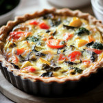 This Vegetable Quiche is a creamy, cheesy, and satisfying dish loaded with colorful veggies like bell peppers, spinach, and mushrooms. Baked in a flaky pie crust with a rich egg custard, it’s easy to customize and perfect for make-ahead meals or holiday brunches.