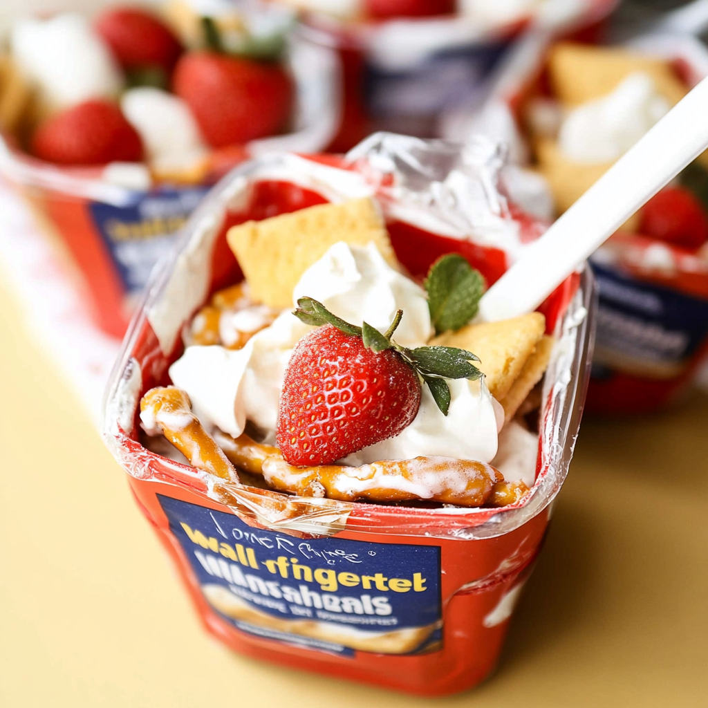 Walking Strawberry Pretzel Salad is a fun, portable twist on the classic layered dessert. Served in individual snack bags, it combines salty crushed pretzels, sweet strawberry gelatin, fresh berries, and a creamy cheesecake filling for a perfect on-the-go treat.