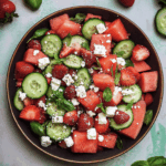 Watermelon Cucumber Salad with Strawberries and Feta is the perfect summer salad—light, refreshing, colorful, and full of vibrant flavor. The sweetness of the watermelon and strawberries is beautifully balanced by the cool crunch of cucumber, salty feta, and a zesty lime-mint dressing. It’s an ideal dish for backyard cookouts, picnics, or light lunches.