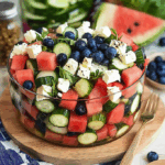 Watermelon Feta Salad with Cucumber and Blueberries is a refreshing, colorful summer salad made with sweet watermelon, crisp cucumber, juicy blueberries, and tangy feta cheese—perfect for barbecues and picnics.