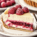 A rich and creamy white chocolate cheesecake swirled with tart raspberry sauce and baked over a buttery graham cracker crust—perfect for special occasions or indulgent desserts.