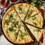 - Remove from oven, top with fresh arugula or a drizzle of olive oil if desired. Slice and serve hot.