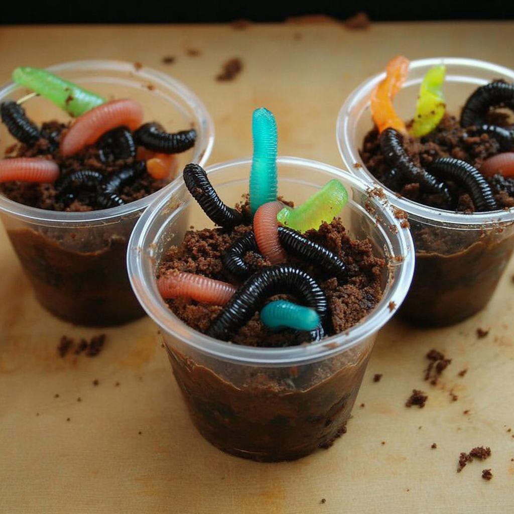 A fun, kid‑friendly dessert featuring layers of chocolate pudding, crunchy chocolate crumbs, gummy worms—and served in cups or a flower pot for a playful twist.